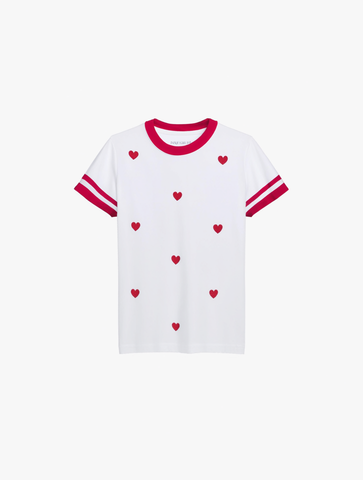 Bershka Women's Loose Fit T-Shirt White Red Hearts Print Round Neck Short Sleeve Casual Valentine's Day Design