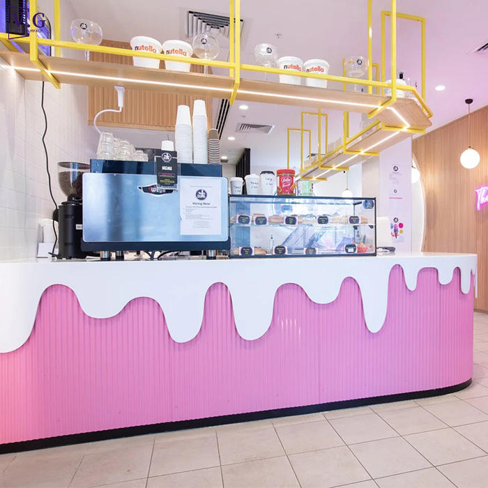 Bancone Cassa per Caffetteria su Misura di Alta Qualità con Design a Forma di Bottiglia di Latte e Servizio OEM