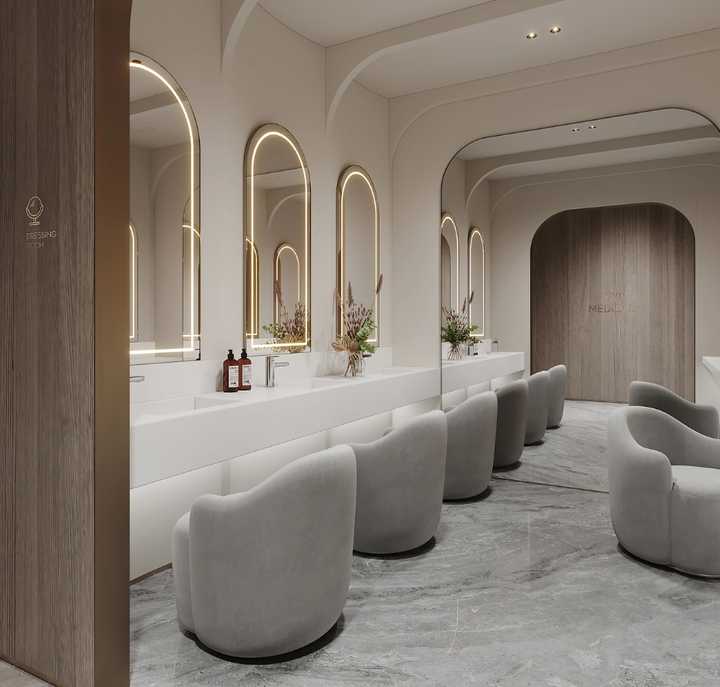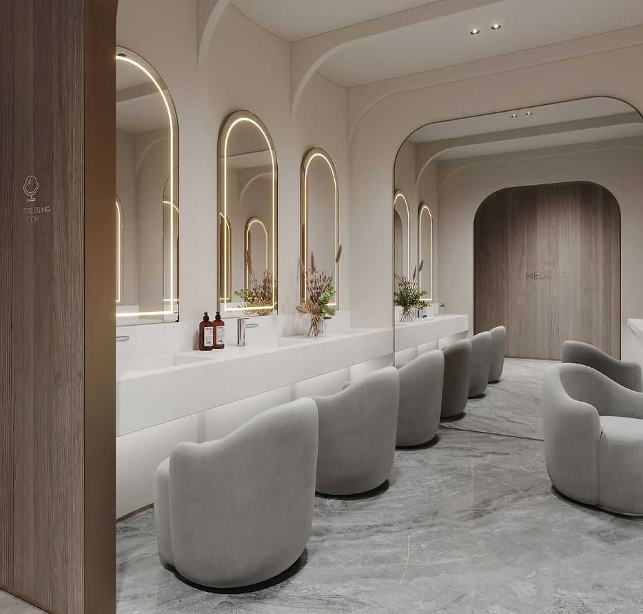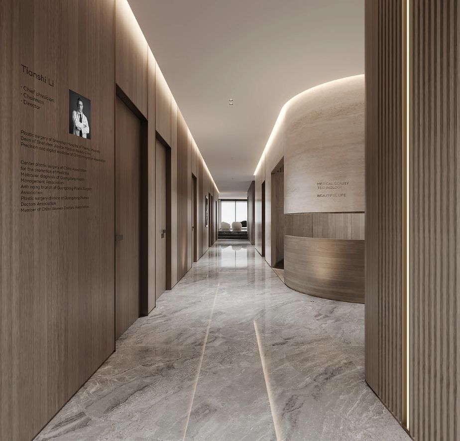 Design d'Interni su Misura per Spa Mediche di Lusso, Cliniche, Appartamenti, Identità di Marca, Rendering 3D, Porta in Vetro con Isolamento Termico