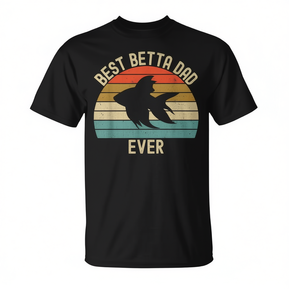 T-shirt Best Betta Dad Ever con design vintage a forma di pesce, nera, unisex, girocollo, manica corta, per adulti