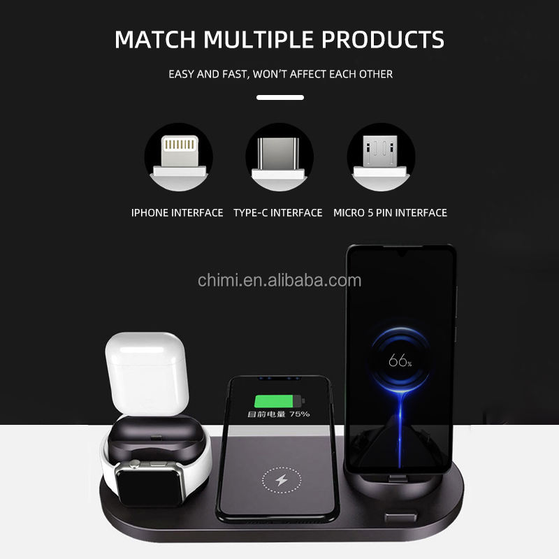 6 in 1 charging stand:Charging for Smart Watch, Earphone, iPhone, Android, Type-C phones