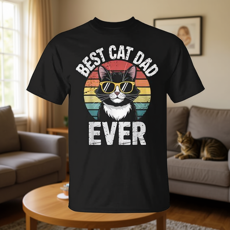 Maglietta vintage per la festa del papà con stampa 'Miglior papà di gatti di sempre'
