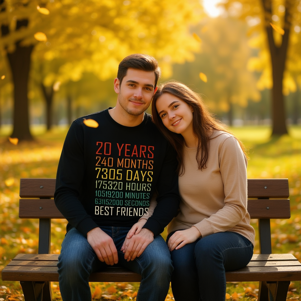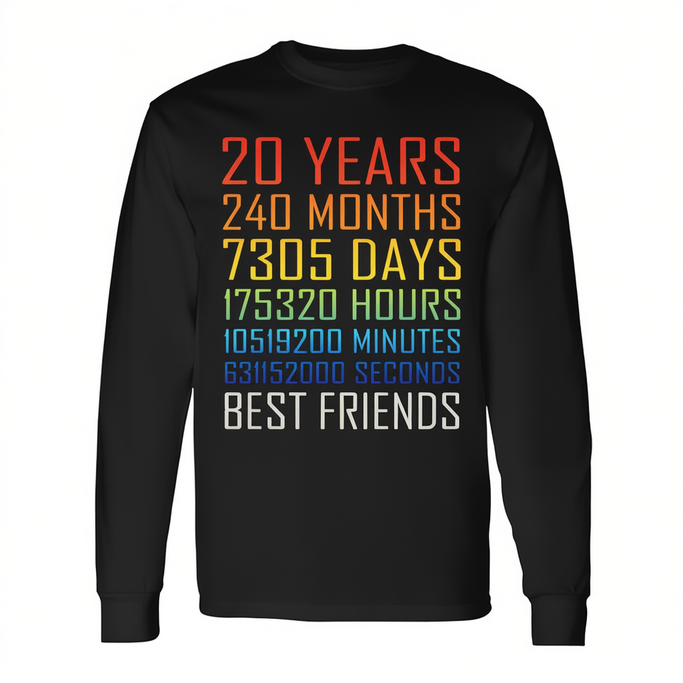 Maglietta a maniche lunghe per anniversario di amicizia vintage da 20 anni, maglietta per migliori amici vintage da 20 anni