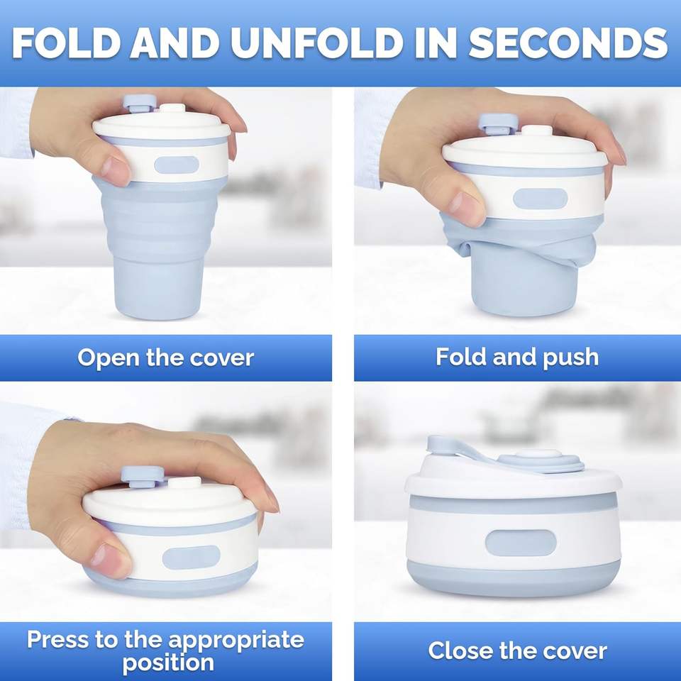 Miglior Regalo: Tazza Pieghevole da 12OZ con Motivo Marmorizzato, in Silicone con Moschettone, Tascabile, per Viaggi, Acqua, Birra, Caffè, Tazza da Campeggio Richiudibile