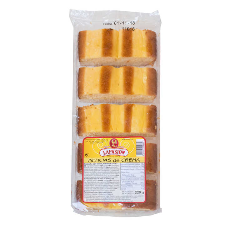 Ingredients:Flour, sugar, eggs, vegetal oil,custard cream