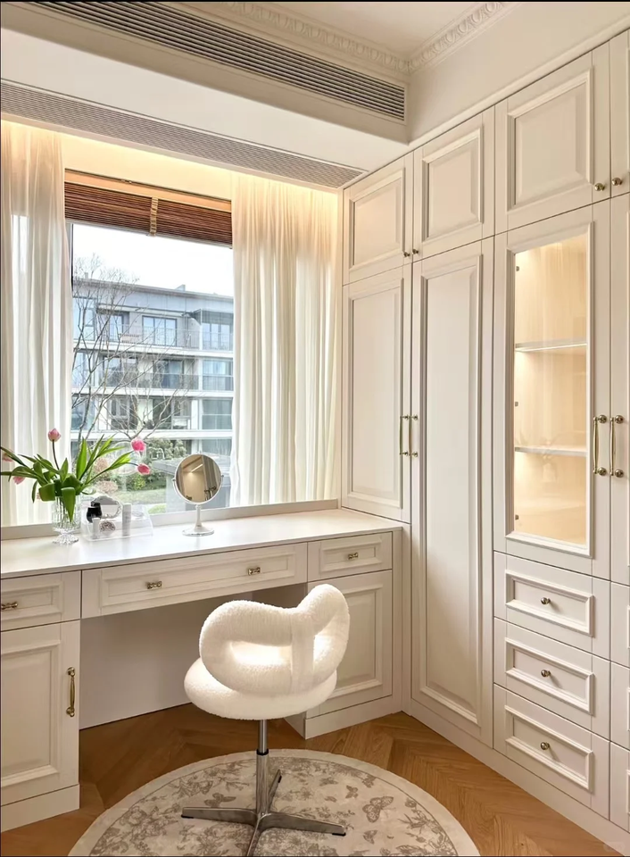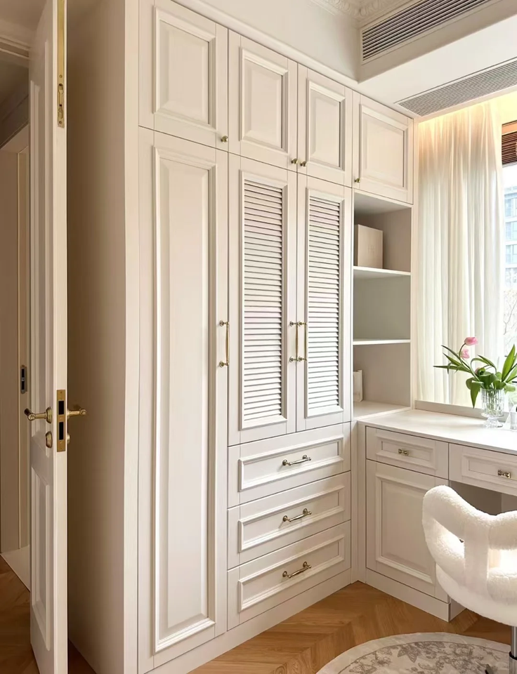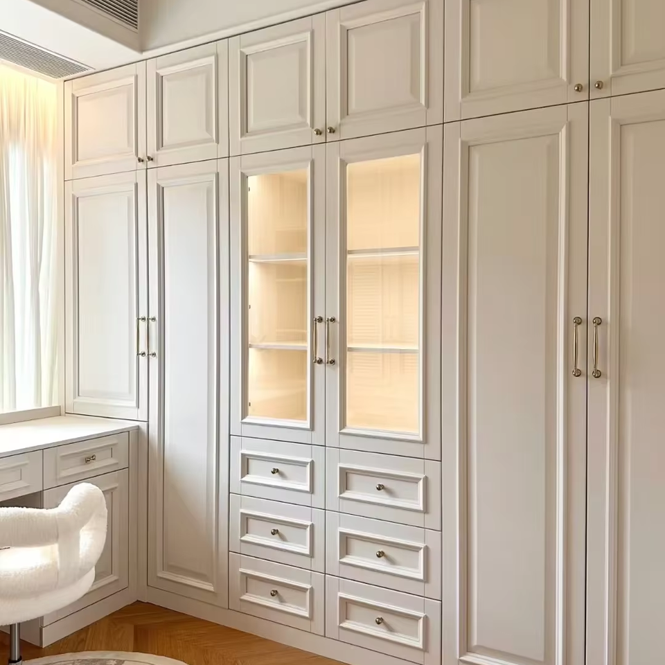 Best Price Multi-functional Combined Dressing Table and Wardrobe Design French Cream-colored Storage Wardrobe for the Bedroom