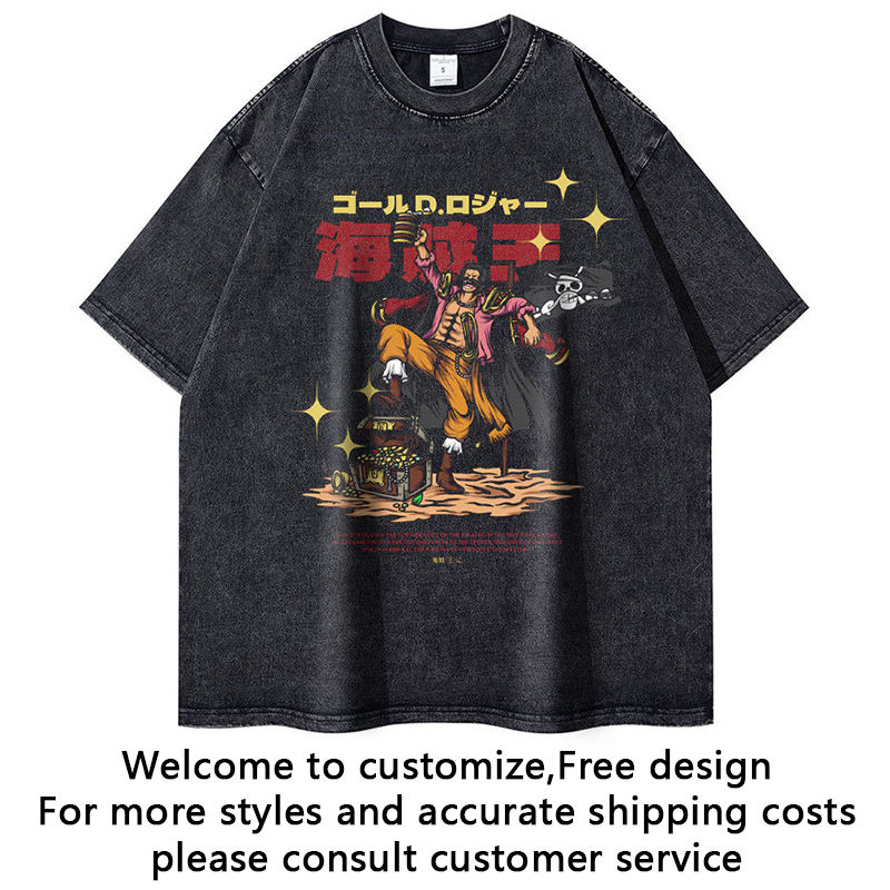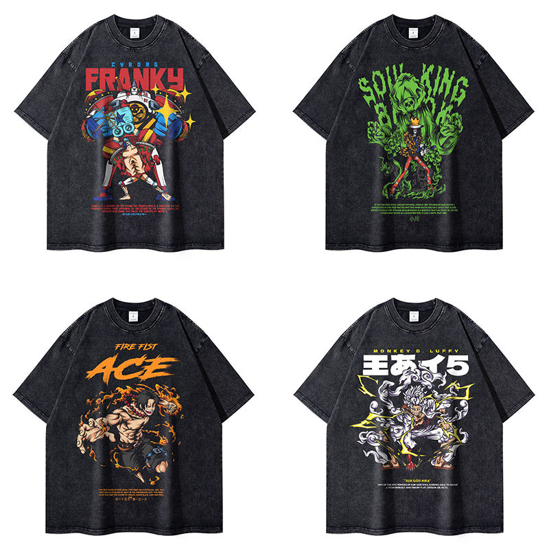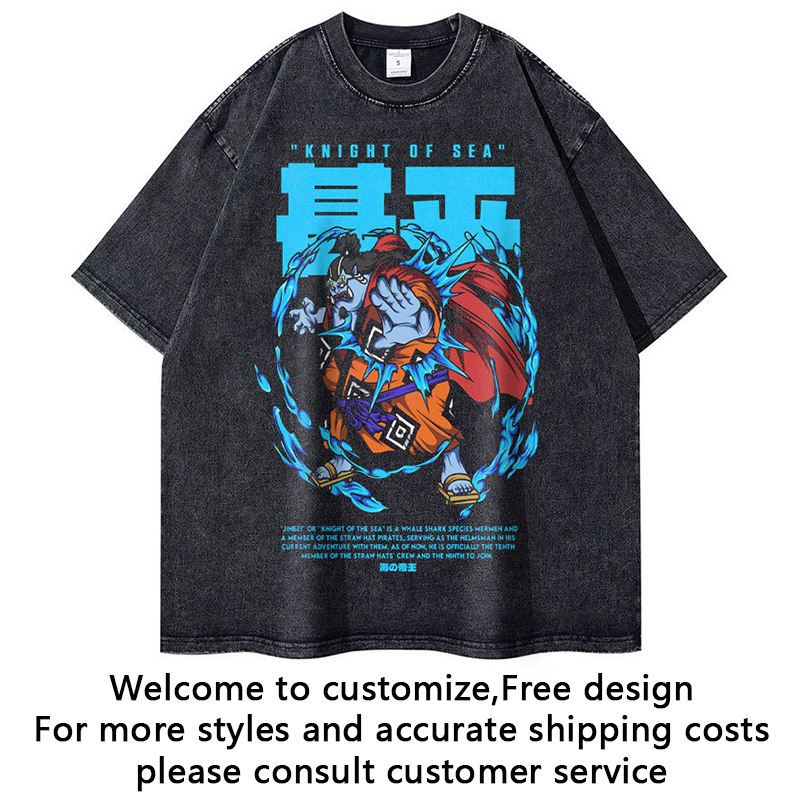 Best Quality Promotional Fashion Youth Men's Breathable Black Washed Streetwear Boxy Fit Retro Hip Hop Anime Printed T-Shirt