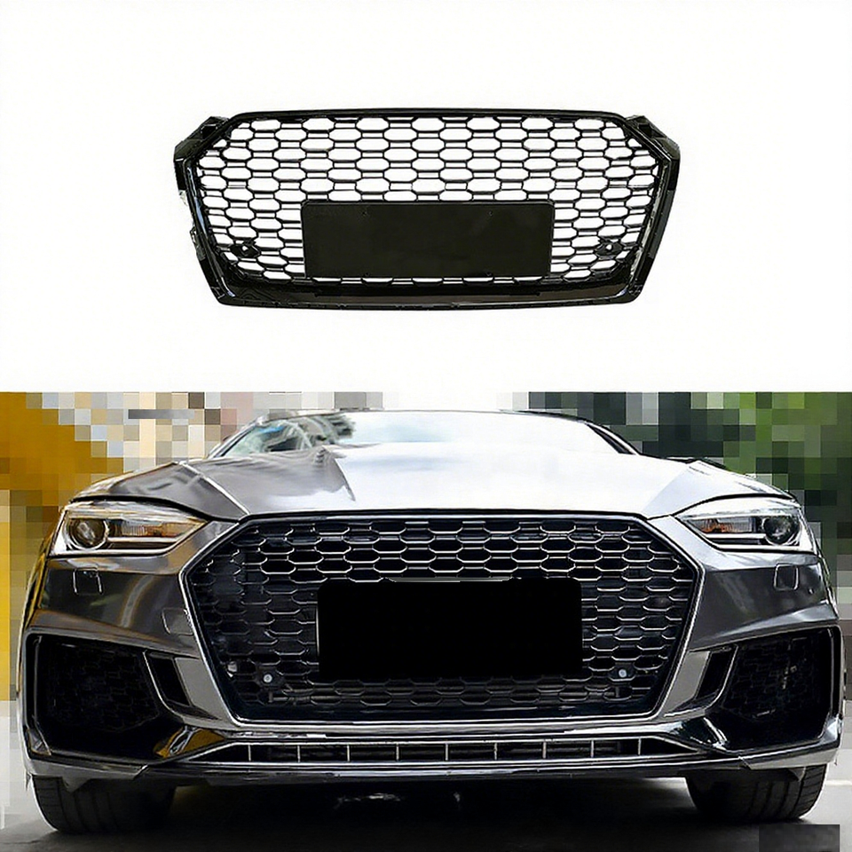 Best Sale Car RS5 Style LOOK Honeycomb Front Grill for Audi A5 S5 B9 2017 2018 2019 Front Bumper Gloss Black Grille