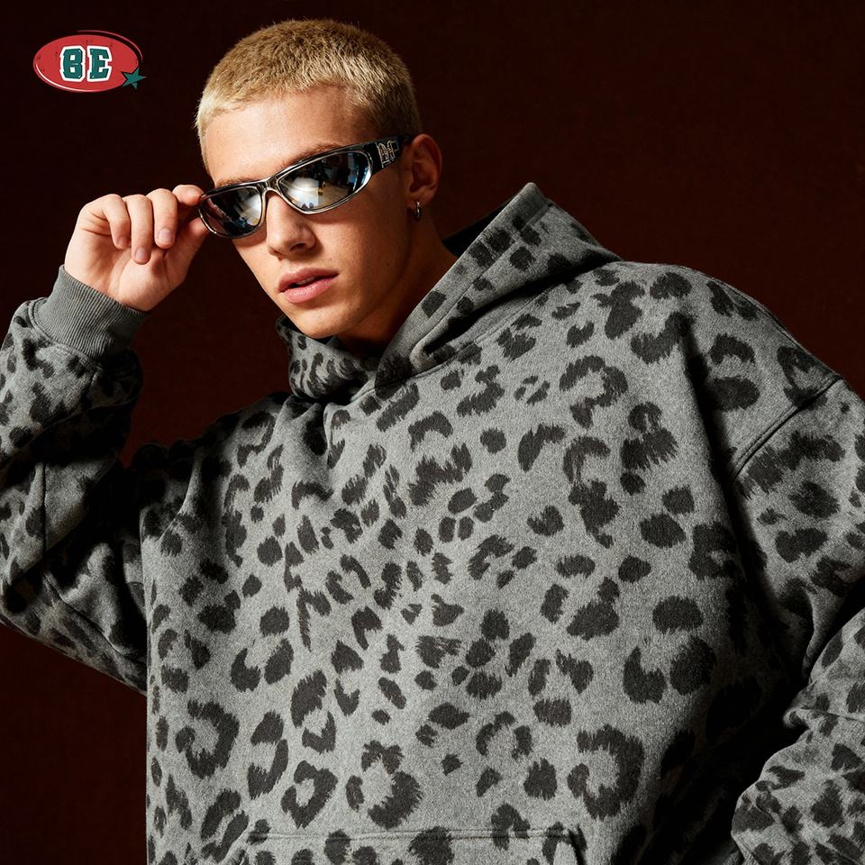 Best Sales Custom Sweatshirt Black Oversized High Quality 53% Polyester Leopard Print Graphic Streetwear Hoodie for Men