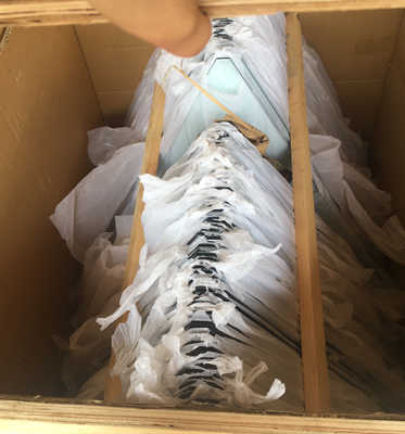 2,The glass will be packed with steel platform with wooden slid around;