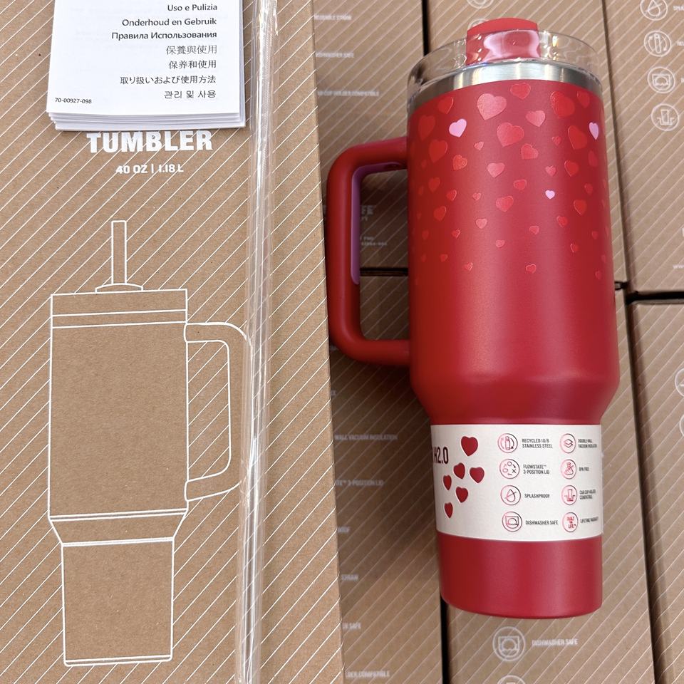 Best Seller 1:1 Original the Famous Brand Stany Cup H2.0 Cup 40oz Valentine's Hearts Tumbler with Handle for Gift