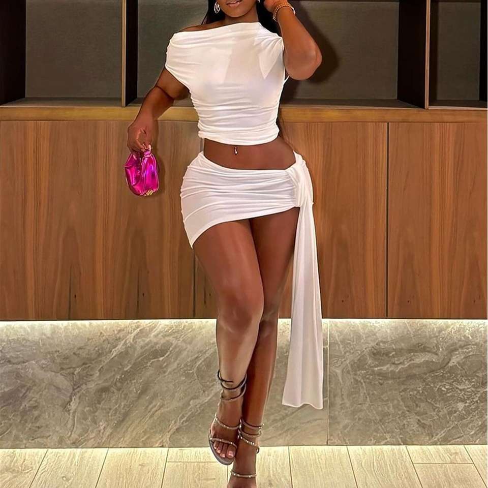 Best Seller tinta unita colletto a barchetta aderente corto con coda laterale gonna donna Set Sehe Fashion