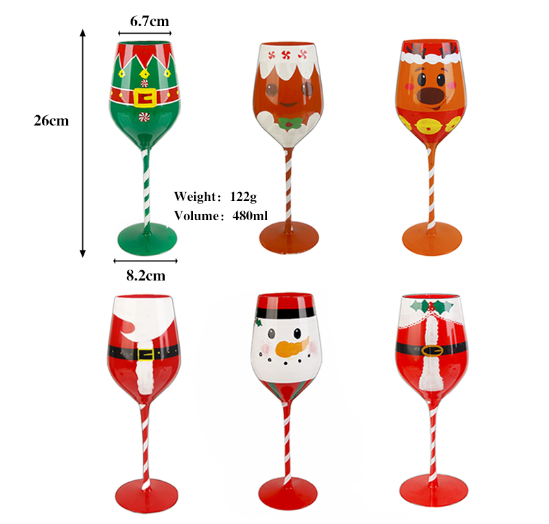 Migliori venditori dipinti a mano natale calice colorato personalizzato bicchieri di vino retrò natale decorativo bicchiere di vino rosso