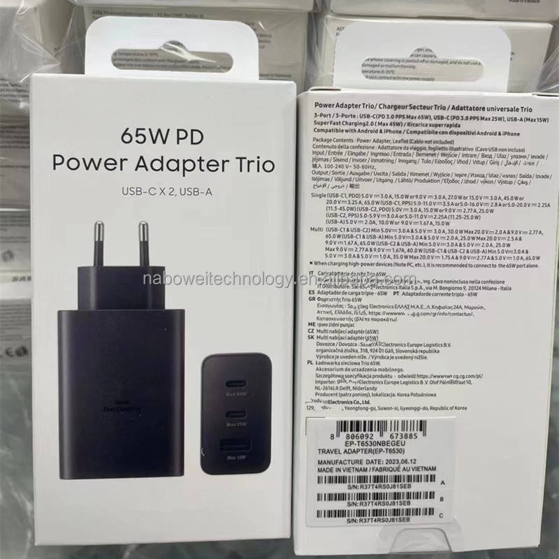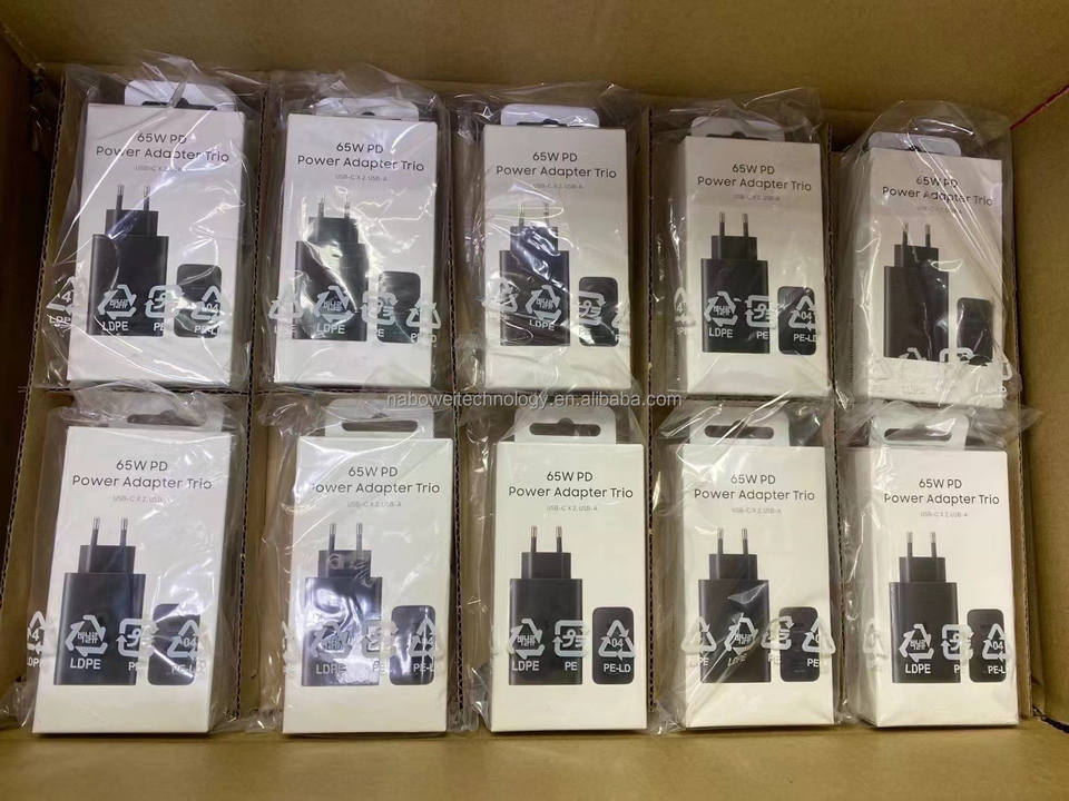 Il più venduto 65W Trio Super veloce caricatore USB C caricabatterie per Samsung Galaxy S26 S24 S23 S22 Note20 Ultra veloce adattatore caricatore