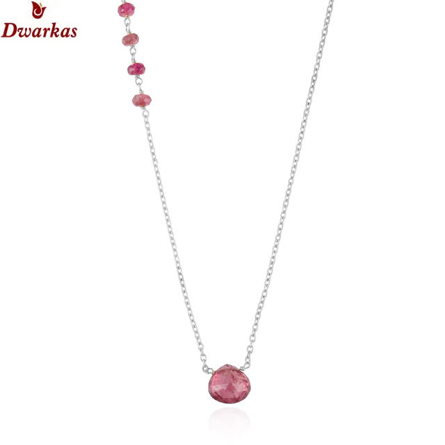 Best Selling 925 Sterling Silver Necklace for Women Natural Pink Tourmaline Gemstone Gold Trendy Chains for Wedding Engagement