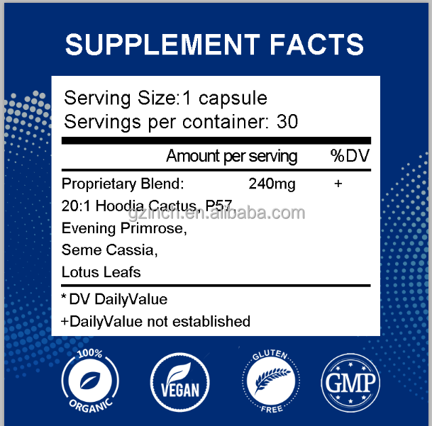 20:1 Cactus Hoodia, P57, Enotera, Semi di Cassia, Foglie di LotoIngrediente principale