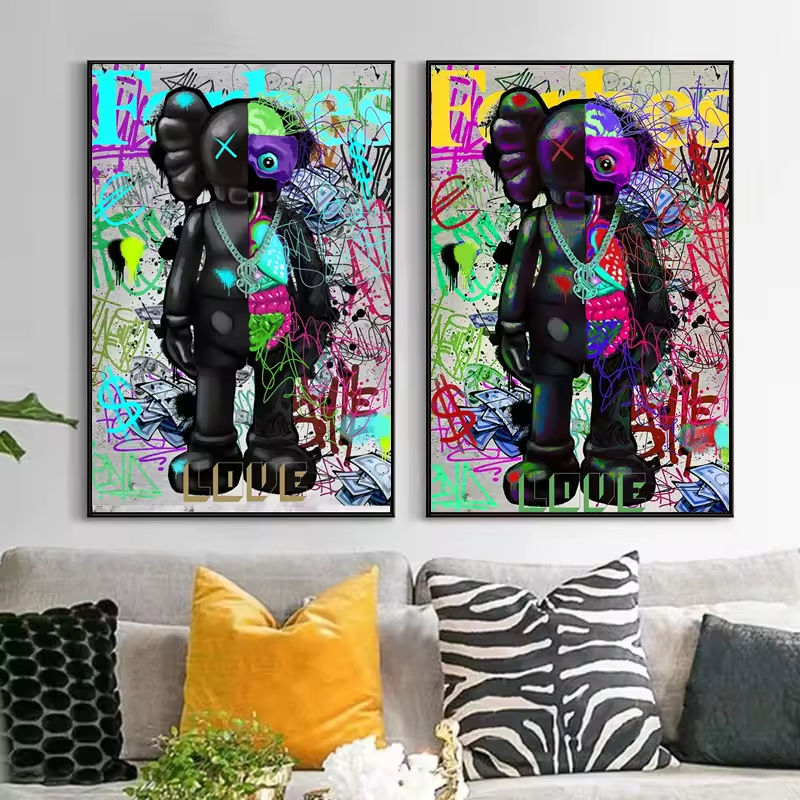 Poster dell'orso più venduto per la serie d'amore Cartoon Graffiti Wall Art per casa soggiorno popolare Deco utilizzato per la stampa