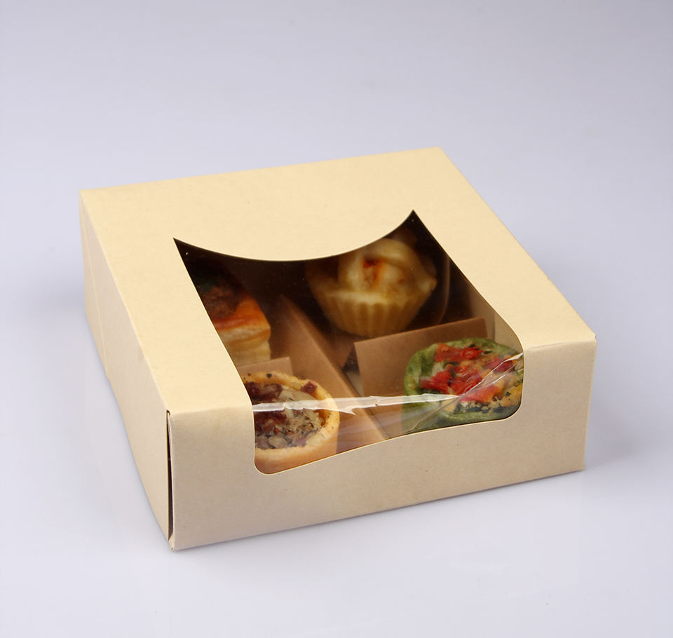 La migliore vendita biodegradabile usa e getta cibo imballaggio da portare via carta Kraft PVC finestra torta scatola per torta di cottura torta di frutta