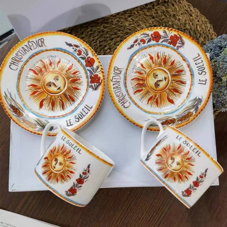 Best Selling European Luxury Sun Moon Collection Dining Set Ceramic Cup & Saucer with Sustainable Engraving Technique Plate Dish