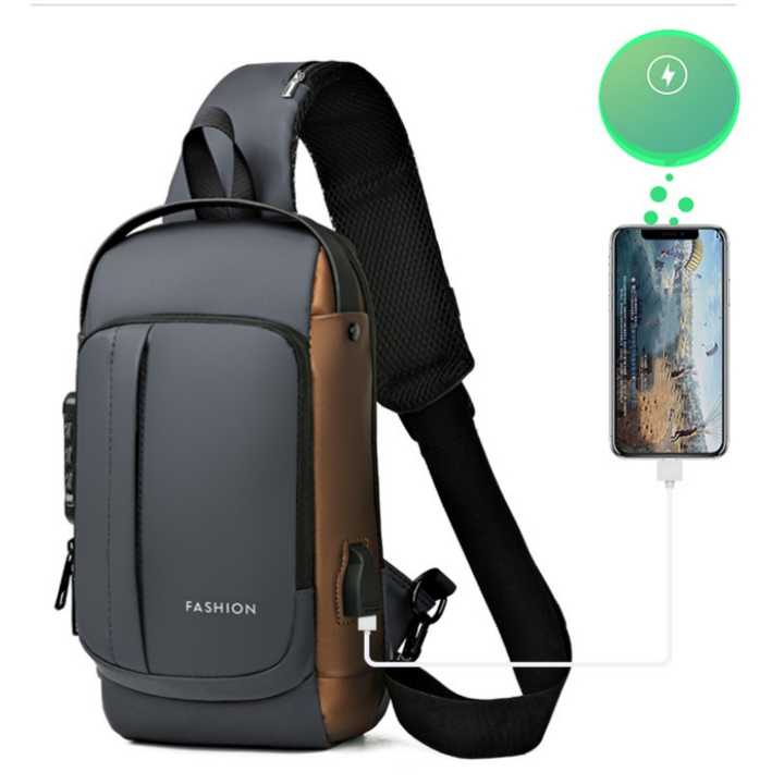 Borsa a Tracolla Impermeabile Antifurto per Moto, Bestseller di Moda, con Porta USB, Borsa a Tracolla per Uomo