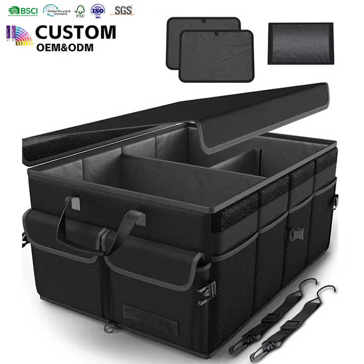 Caratteristica della scatola dell'organizzatore del bagagliaio dell'auto:2 scomparto principale + tasca in rete