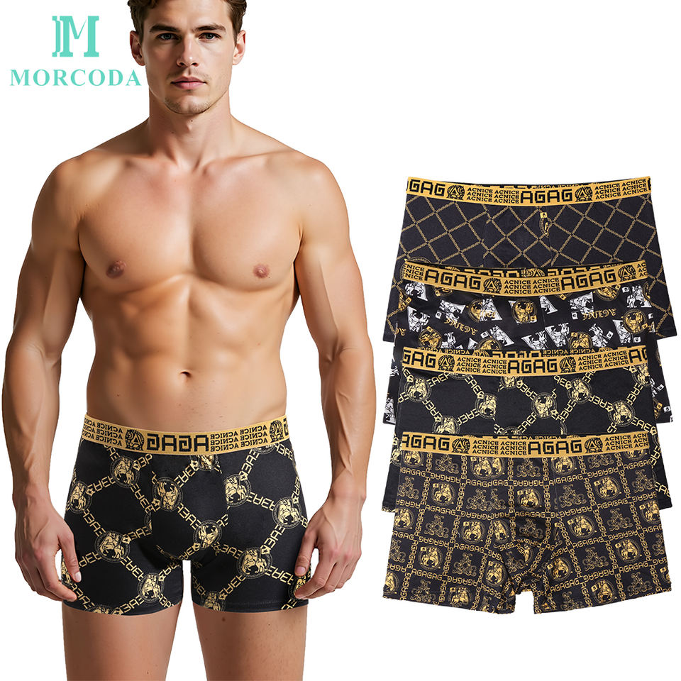 Best-Selling Men's Knitted Boxer Briefs Middle Eastern Black Gold New Design Mixed Patterns Big Size Underwear Logo Waist Quick