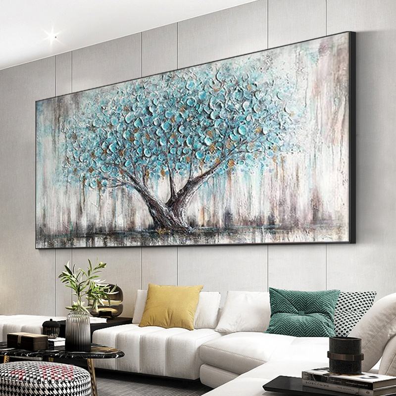 La migliore vendita di paesaggio moderno astratto tela da parete arte albero blu con olio di fiori dipinto decorazione per la casa