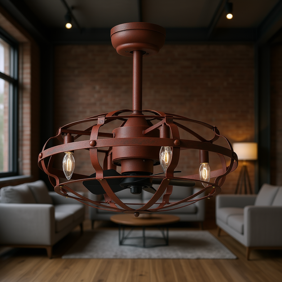 Ventilatore da Soffitto Moderno Senza Pale 42 Pollici Rosso Ruggine con Kit Luce Industriale, Telecomando, Motore AC per Interni, Struttura in Metallo