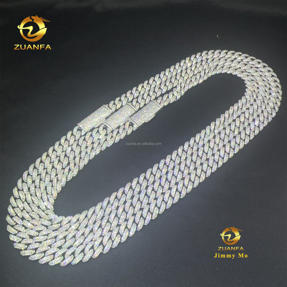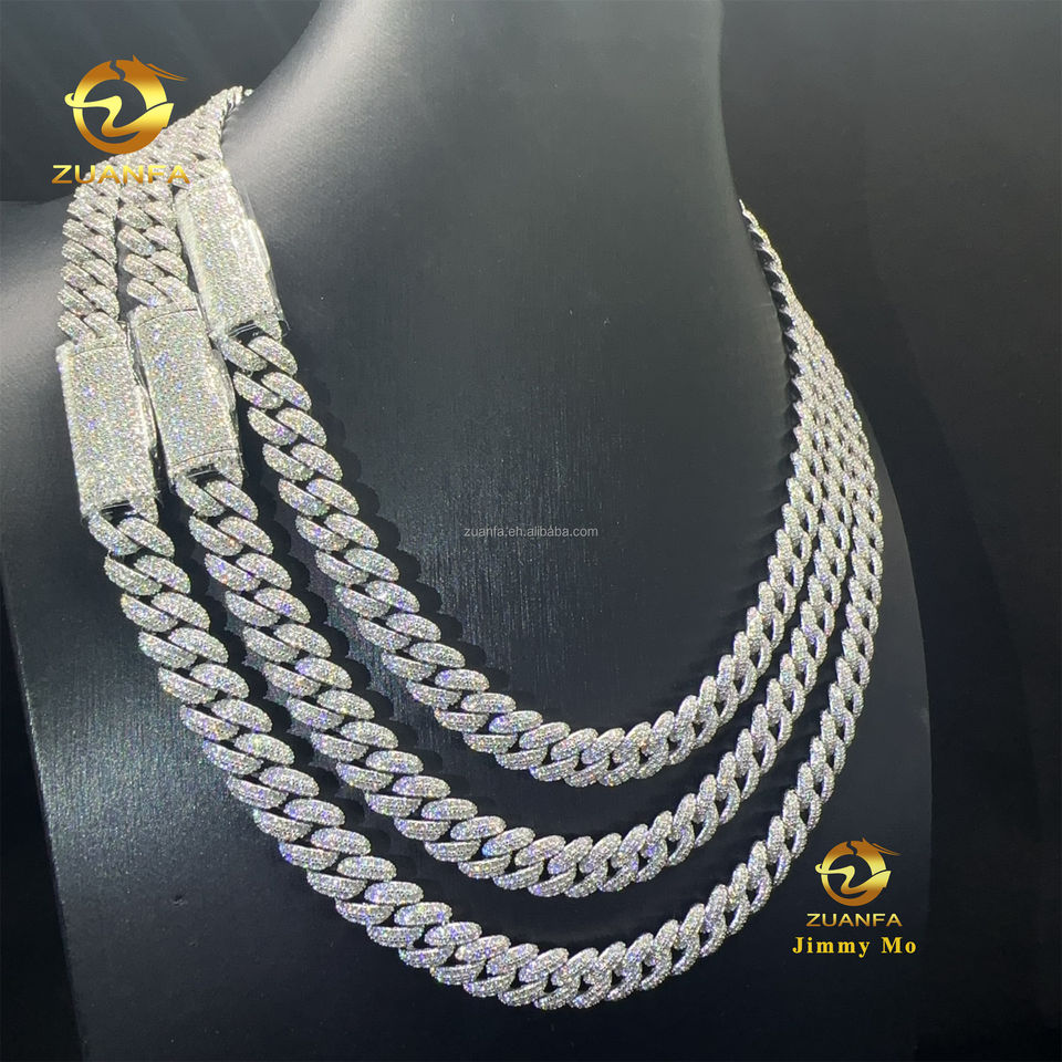 Best Selling Pass Diamond Tester 10mm Two Rows 925 Sterling Silver Iced Out Hip Hop FL Moissanite Diamond Cuban Link Chain Men