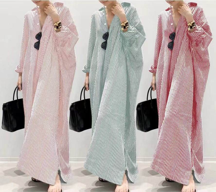 Abiti Lunghi Taglie Forti Best-Seller per Donne, Vestito Casual Dritto e Ampio con Maniche a Tre Quarti a Righe