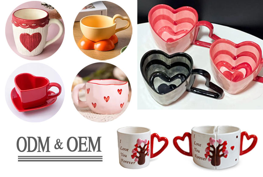 Best Selling Products 2024 Valentines Day Ceramic Mug with Red Heart Decal Handmade Milk Coffee Mug Custom Ceramic Cute Mugs