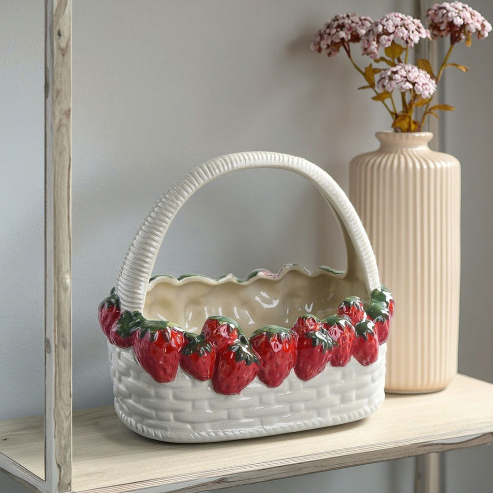Cestini di frutta in ceramica di fragole più venduti per decorazioni natalizie e contenitori per pane versatili