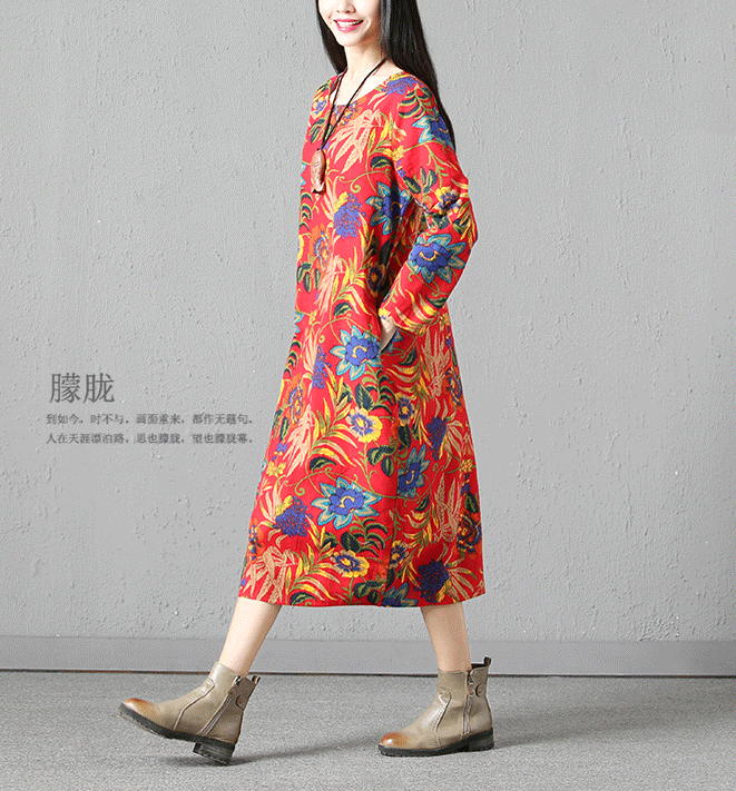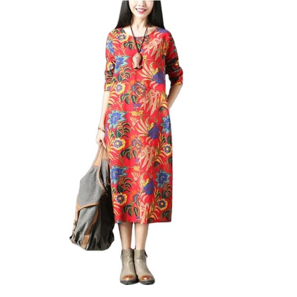 Best Selling Woman Clothes Large Loose Mid-length Long-sleeved Ladies Evening Dresses Women's Retro Artistic Casual Clothing