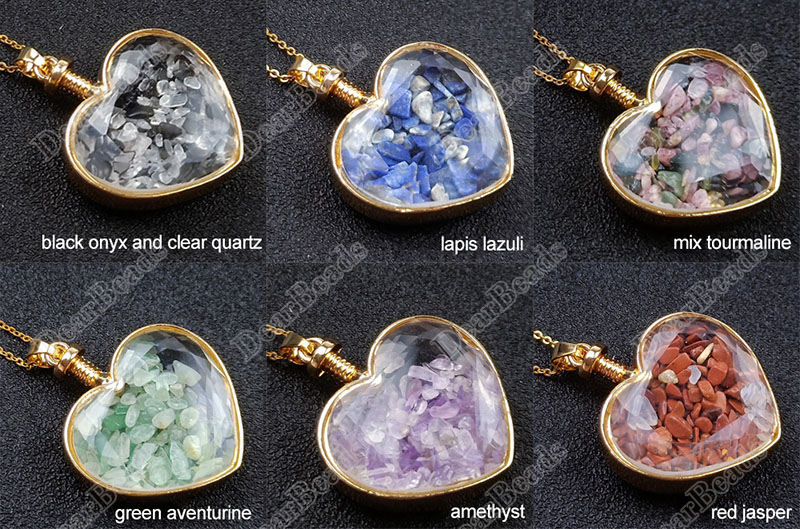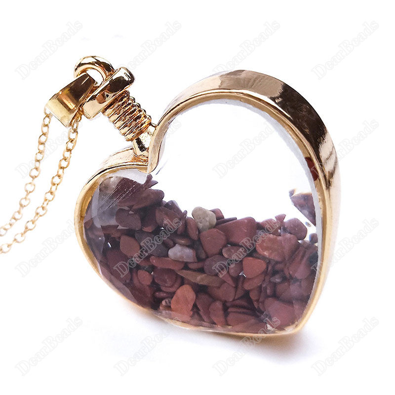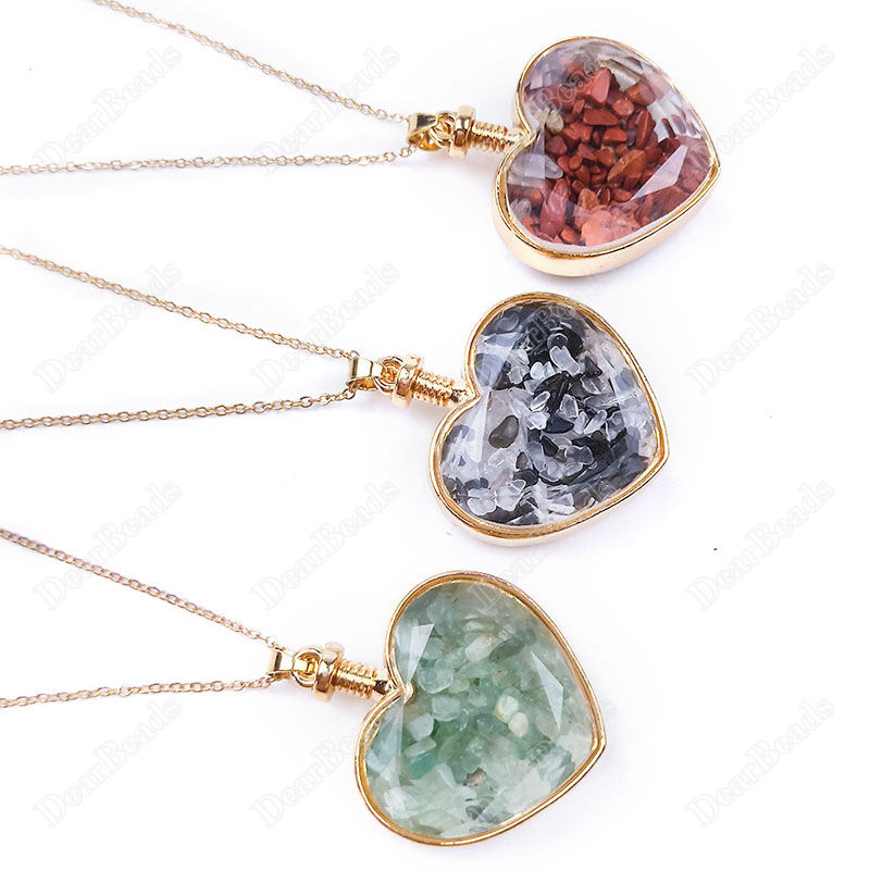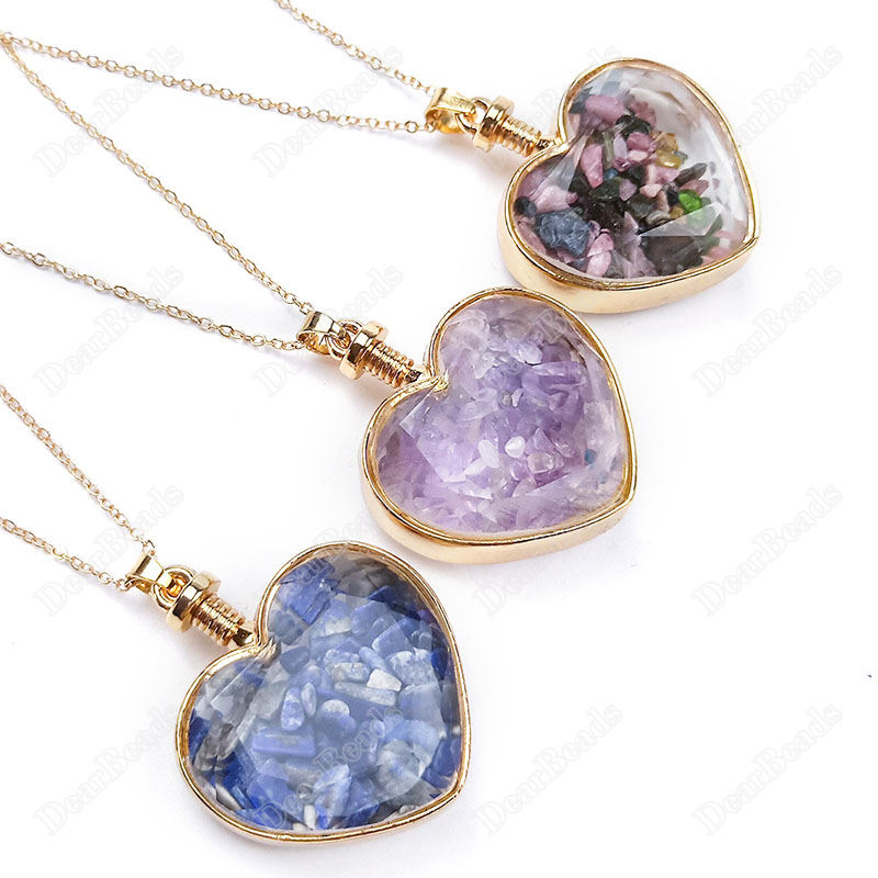 Migliore bottiglia che desiderano pietra naturale chip di bottiglia del pendente per la collana, trasparente sfaccettato cuore di cristallo della collana della bottiglia
