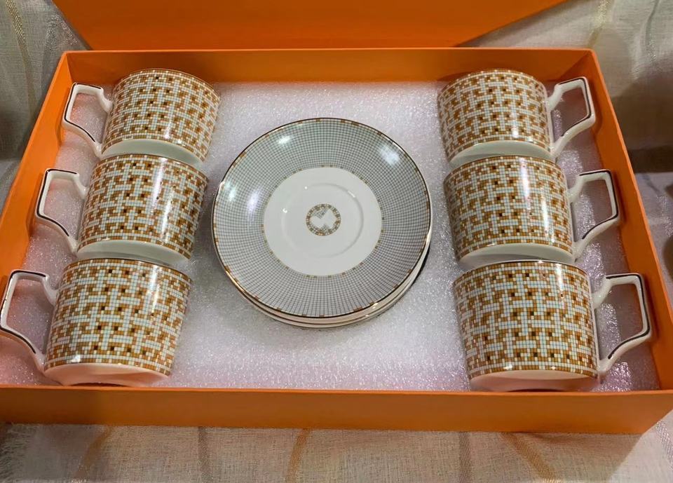 Best-selling Luxury Coffee Cup and Saucer Gift Box Porcelain Dinner Set Minimalist Cup Set Western Ceramic Bone China