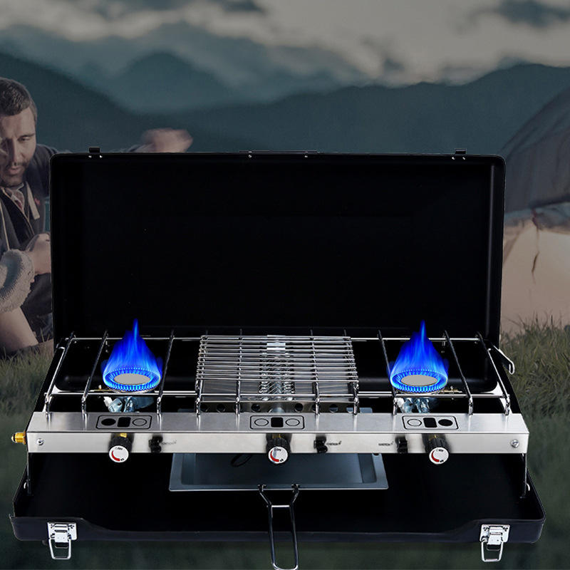 Fornello a Butano Portatile Best-seller Pieghevole Nero con Griglia Adatto per Campeggio e Barbecue all'Aperto