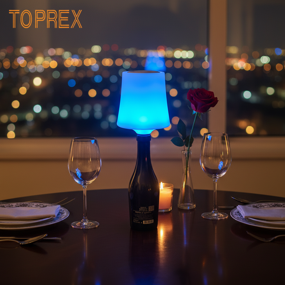 Lampada da Tavolo a LED Blu per Bottiglie di Vino, Bestseller con Funzione di Cambio Colore Touch per Cene Romantiche e Atmosfere da Ristorante