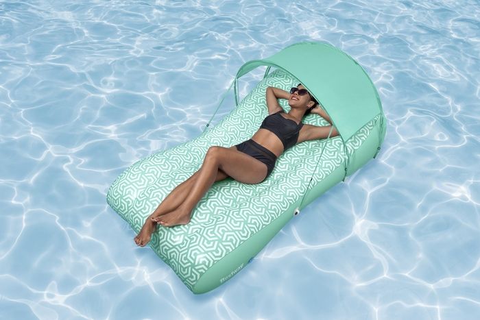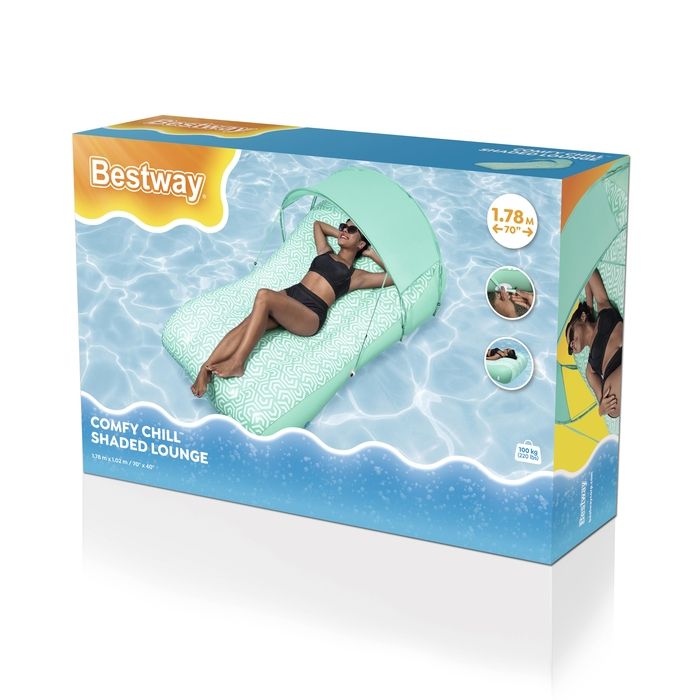 Bestway 43729 Comfy Chill Materassino Gonfiabile Ombreggiato in PVC con Poggiatesta, Capacità 100kg, Facile da Gonfiare