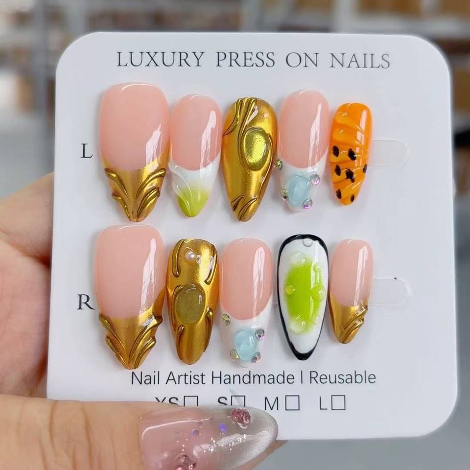Betifnail Wholesale Price 3D Handmade Press on Nails High Quality Almond Shape False Nails 10pcs/set Support Custom Package