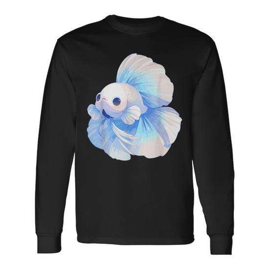 T-shirt a maniche lunghe Betta Fish con design ad acquerello blu per gli amanti dei pesci