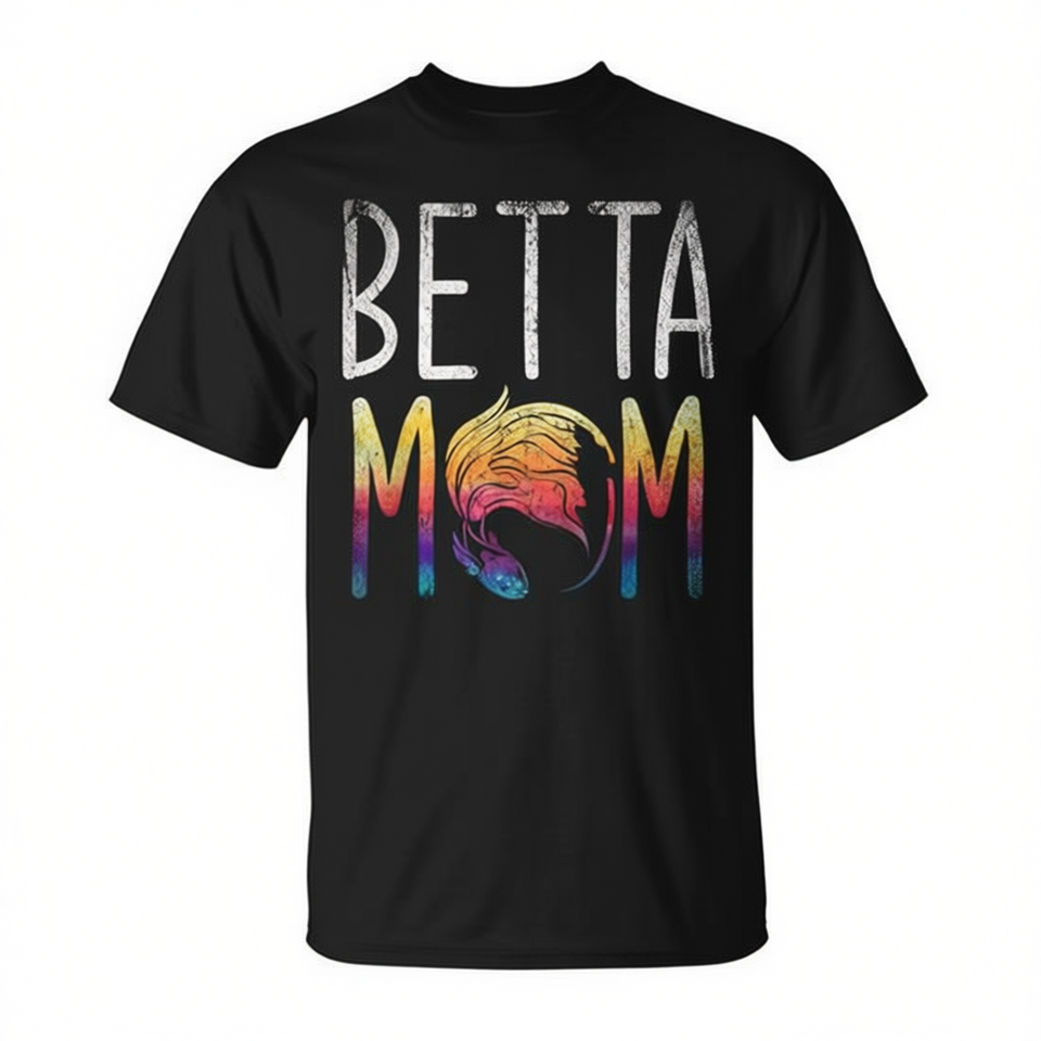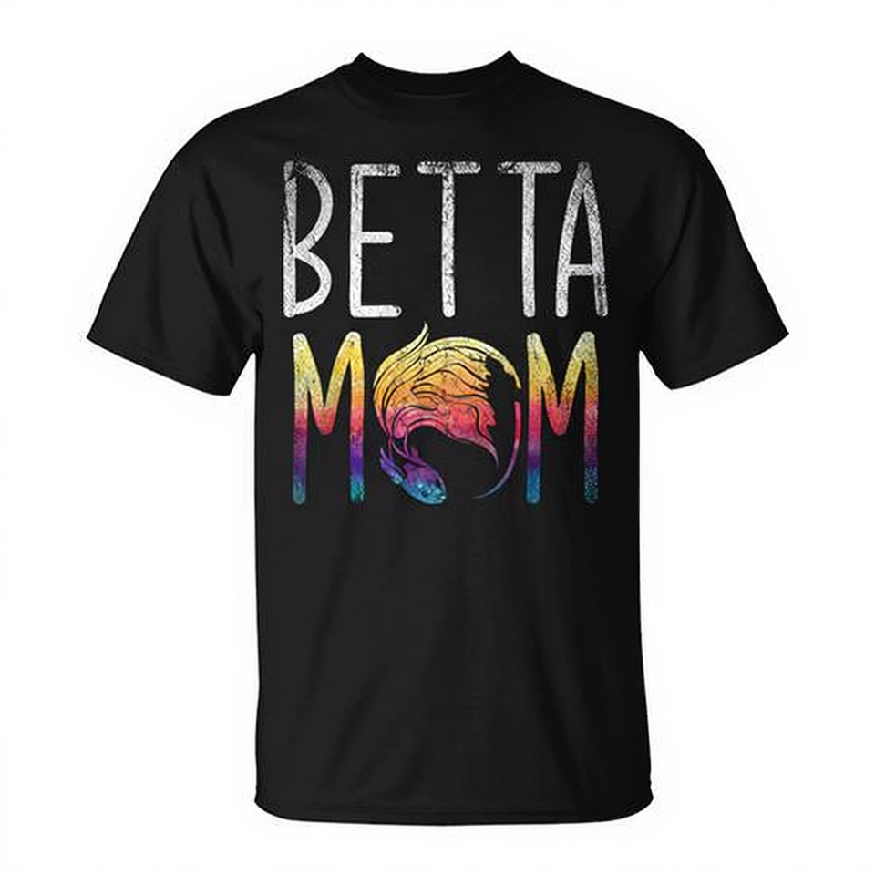 T-shirt Betta Mom a maniche corte, girocollo, stampa digitale, unisex, per adulti, regalo promozionale per gli amanti dei pesci Betta, proprietari di animali domestici da acquario