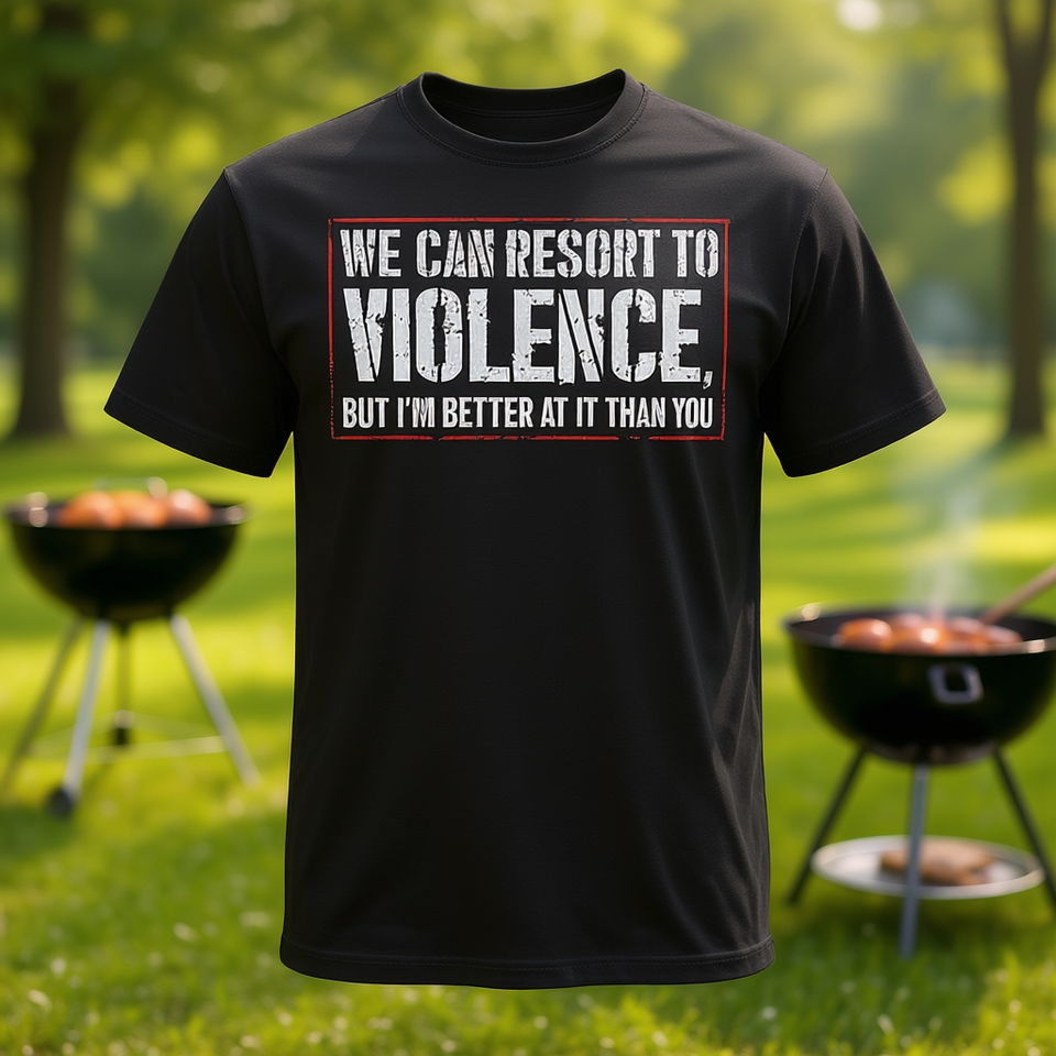 Maglietta con stampa 'Better at Resorting to Violence on Back' - Prodotto Promozionale