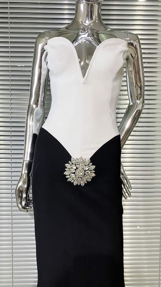Bettergirl 2025 New Luxurious Diamond Flower Black Butt and strapless Dress Elegant Fashion Party Bandage Dress