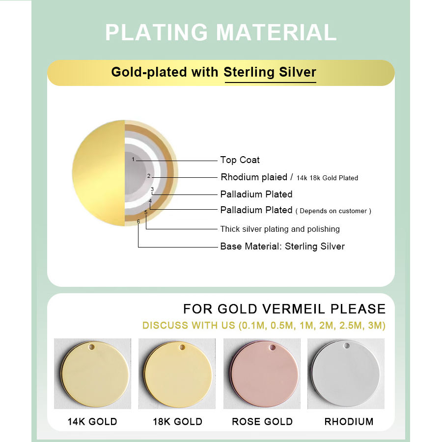Placcato argento, Placcato oro, Rhodium placcato, Rosa Color Oro, Black Rhodium, Placcato in oro 18kPlaccatura