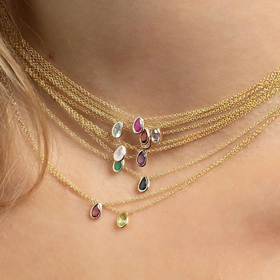 Collana con Pendente in Argento Sterling 925 Placcato Oro 18k, con Rubino, Smeraldo, Zaffiro o Zirconia Cubica Taglio Pera Personalizzabile