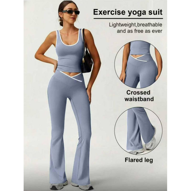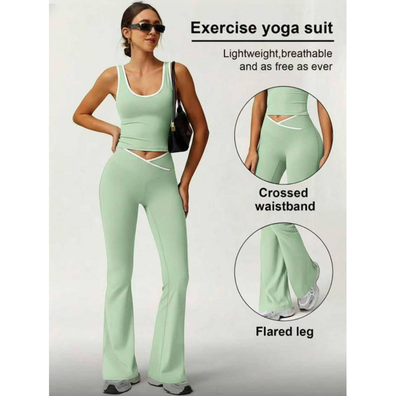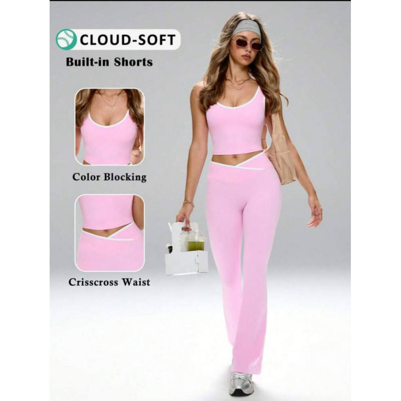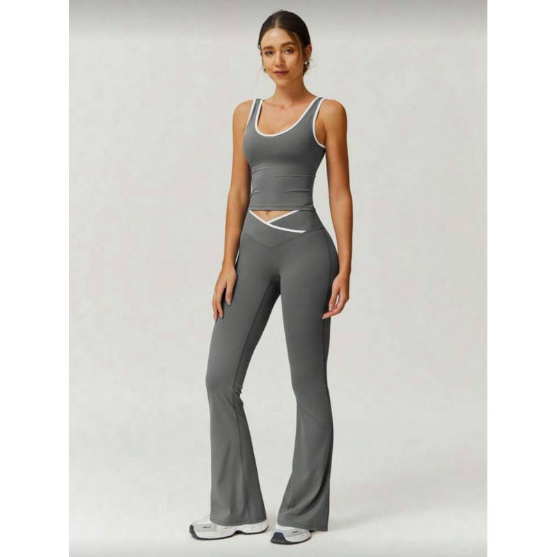 Set Leggings Corti Bi Cross Flare da Donna, Abbigliamento Sportivo per Yoga e Fitness, Vita Alta, Elasticizzato, Senza Cuciture, Nero con Bordo Bianco