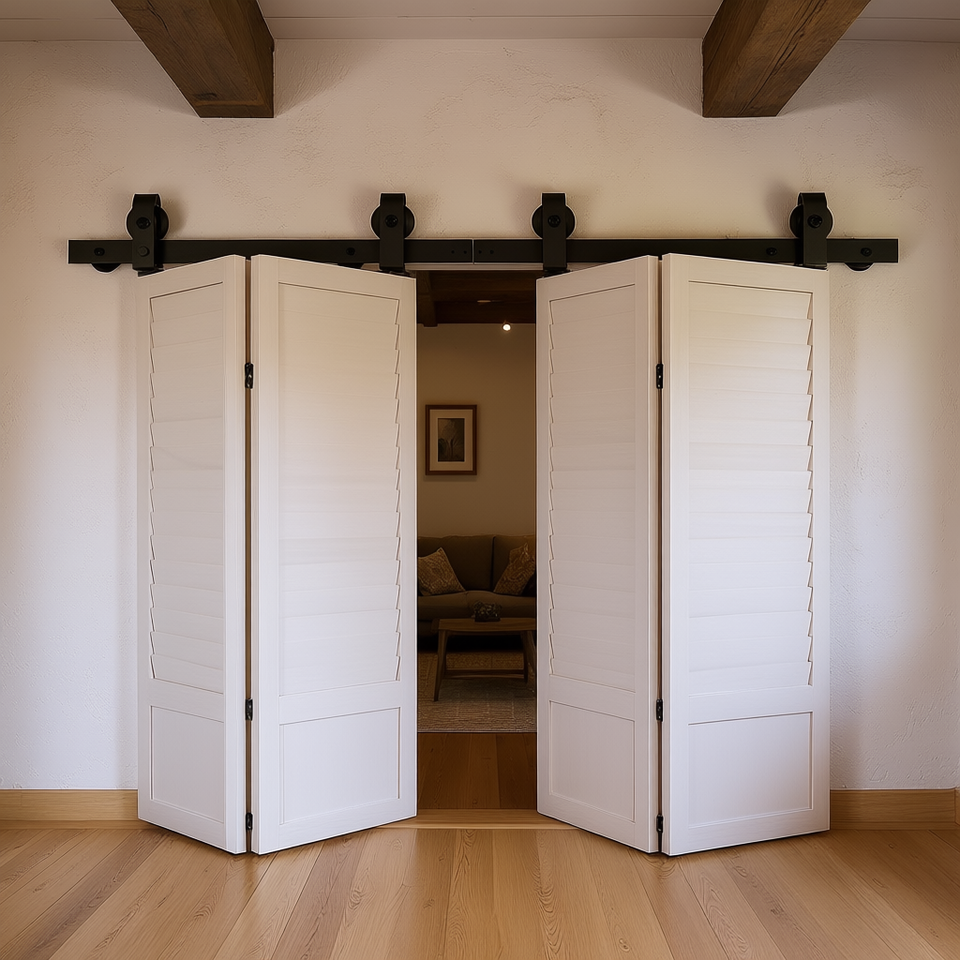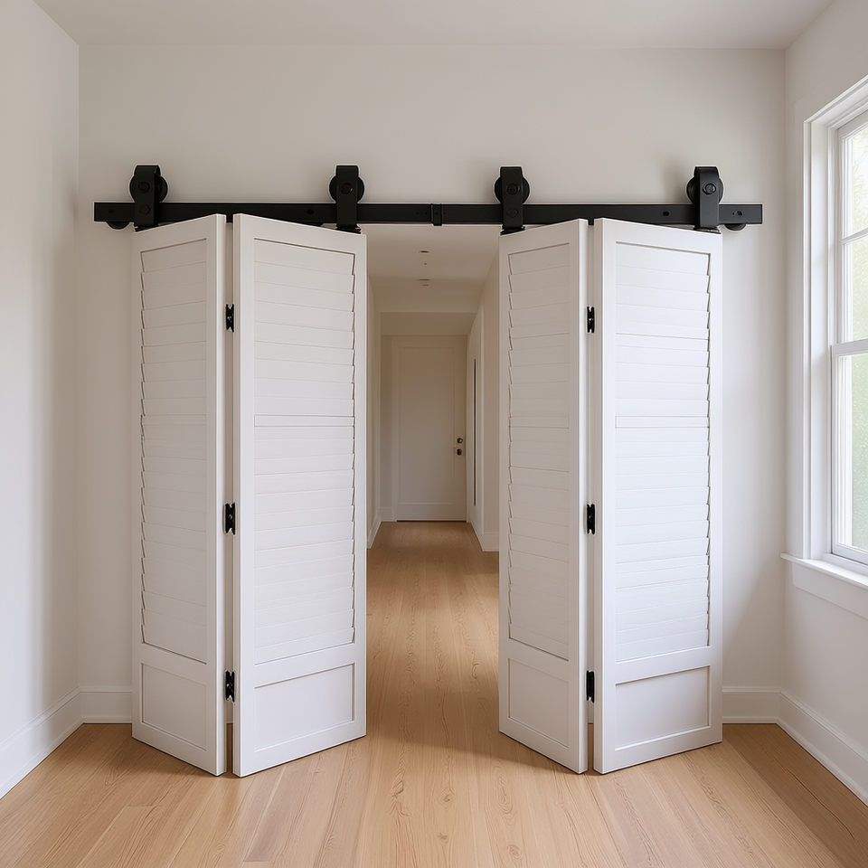 Kit Binario per Porta Scorrevole Pieghevole a Soffietto da 52 Pollici per Quattro Porte da 12 Pollici, Stile Rustico per Interni