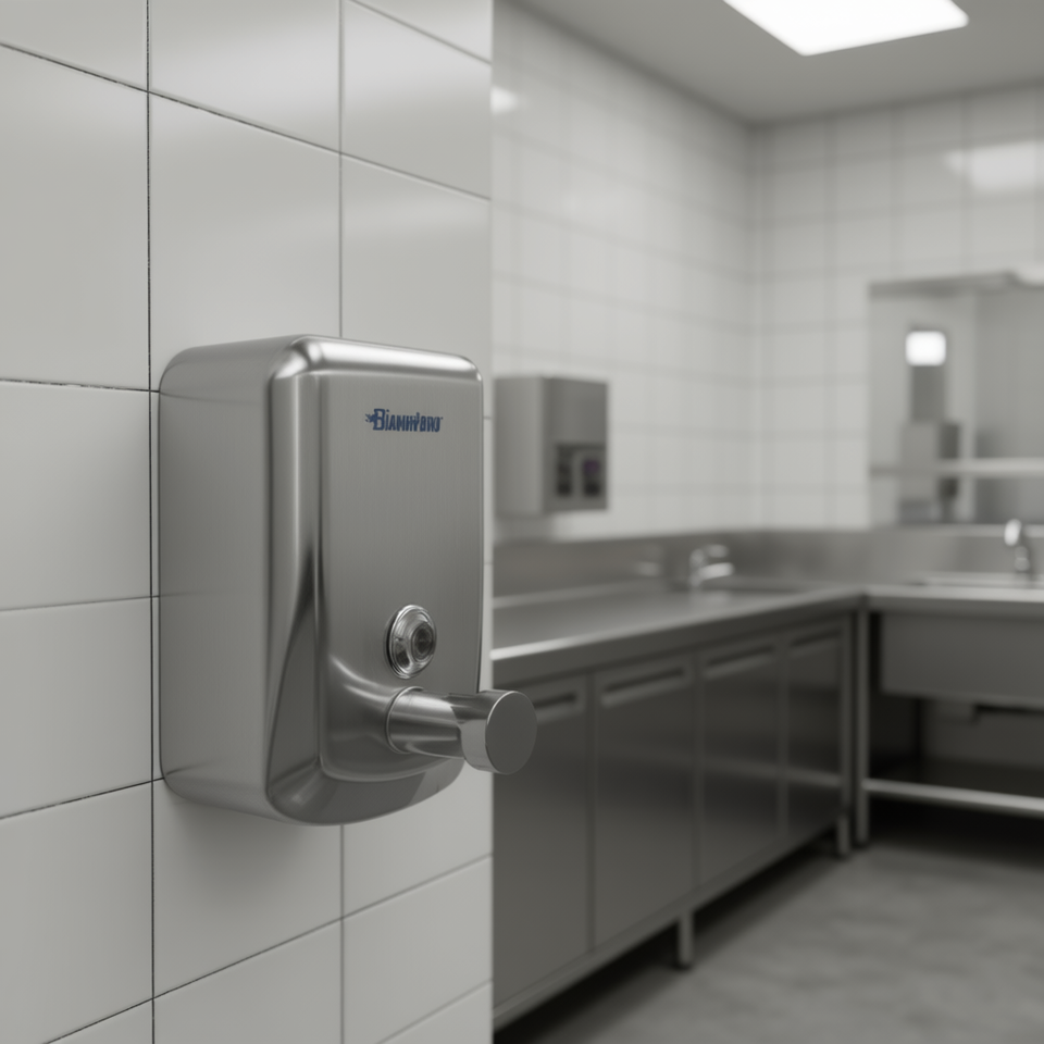 Dispenser Verticale per Sapone Liquido Bianhydro 1,00 L in Acciaio Inox da Parete per Uso Commerciale