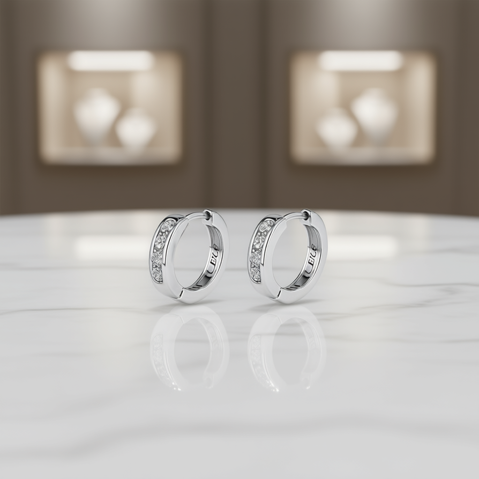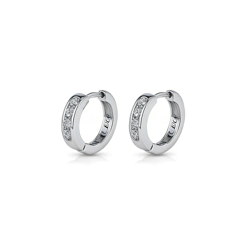 Orecchini a Cerchio Bice in Argento 925 Placcato Rodio con Cristalli, Design Minimalista per Uso Quotidiano, Unisex
