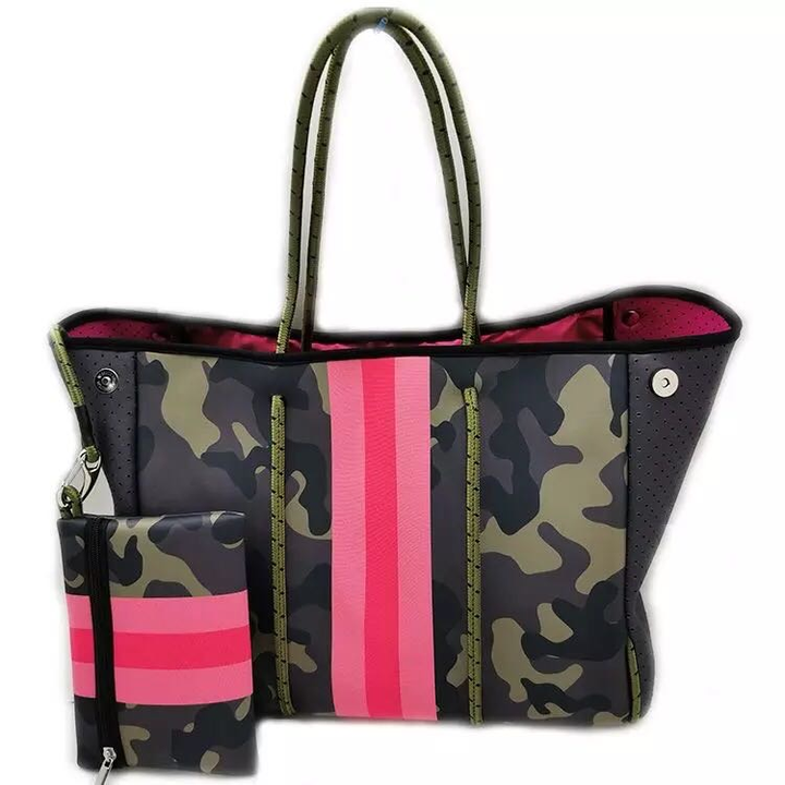 Big beauty beach bag mommy and me with gold stripe 2021 vendita calda di alto livello leopard camouflage camo neoprene beach tote bag